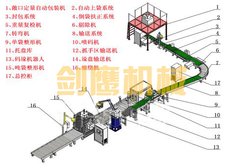 适用范围: 尿素、复肥、味精、塑料粒子、聚丙烯、矿砂、食品添加剂等颗粒物料的包装生产线